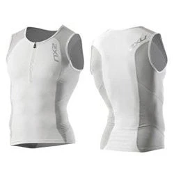 2XU Men’s Compression Tri Singlet, White/Grey (Small)