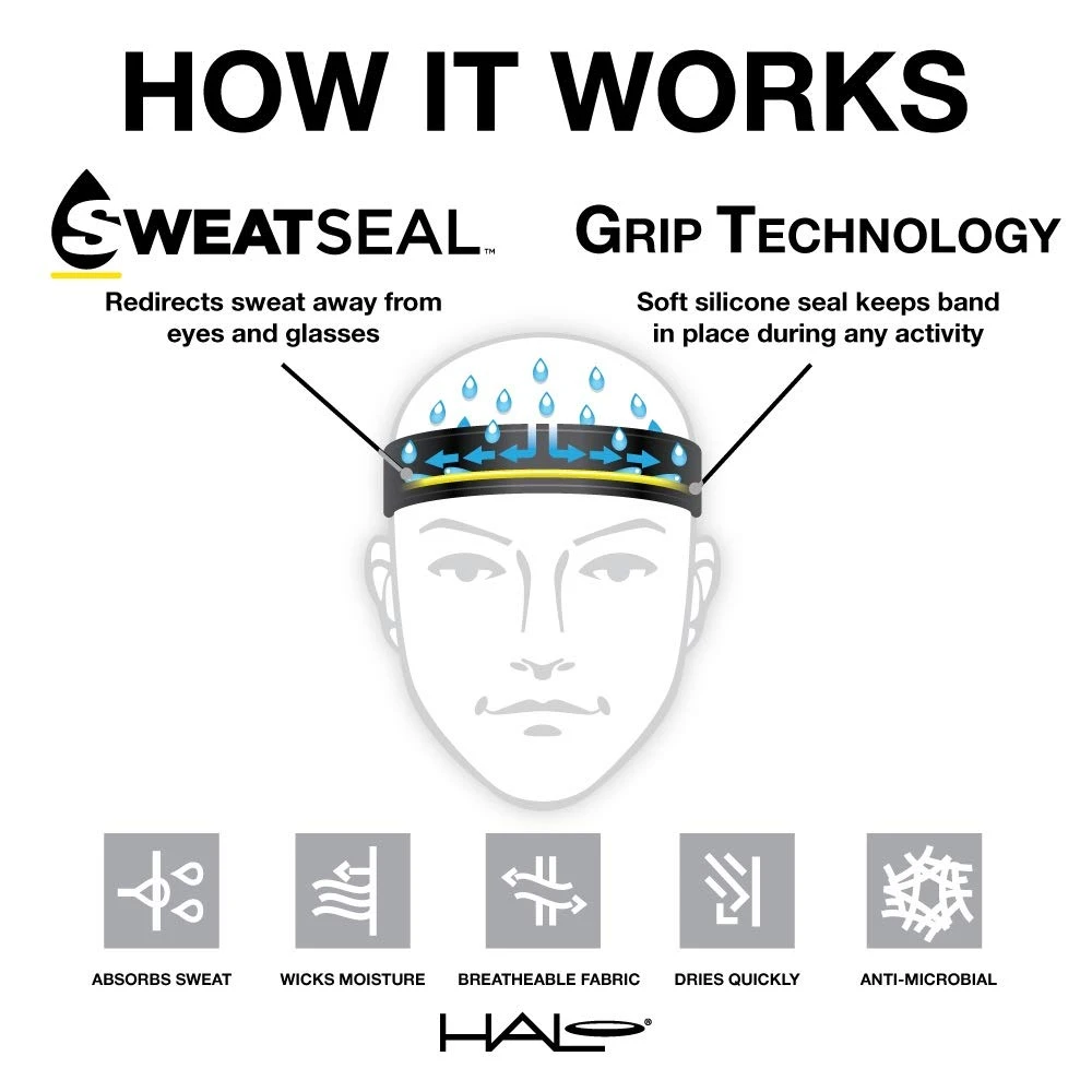 The Halo Bandit – pullover is wide enough to cover your entire forehead. Featuring a pullover, one size fits all design, this sweatband is great for those who sweat a bit more than most. This headband is 4” in the front and tapers off to allow for ear clearance so you get a wide sports headband without sacrificing comfort. Of course, it includes Halo Headband’s patented Sweat Seal Technology so you can remain focused without stinging sweat in your eyes.