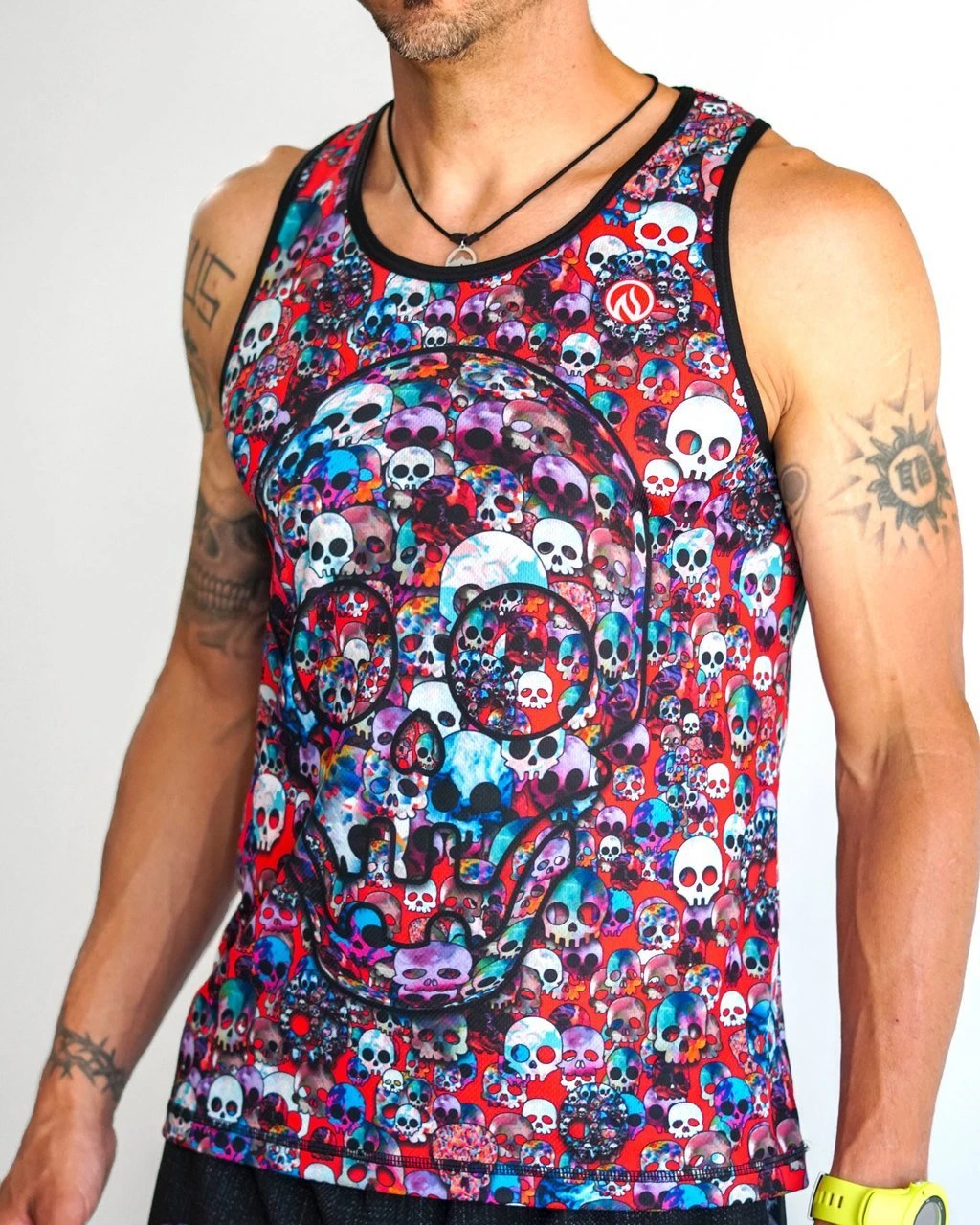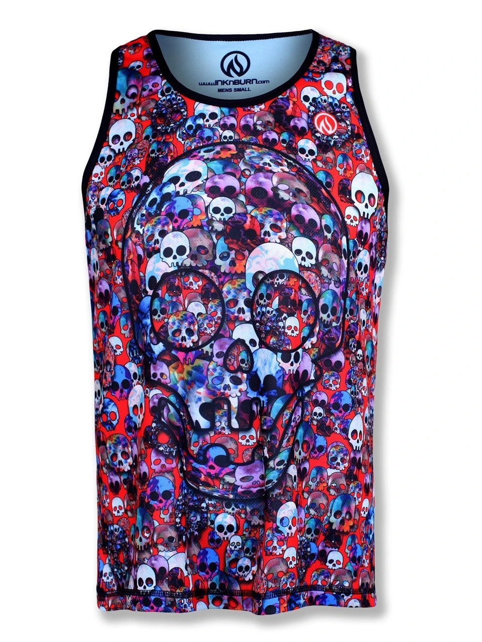The Men’s 2019 Run or Die Singlet is powerful, complex and dynamic. This 2019 version in INKnBURN’s Run or Die series features skulls because they symbolize triumph over death. This design is for everyone who made the choice to run, workout, fight back, push harder and reach their goals. The collage of skulls represents how all those small choices over time add up to the person you are today. This wonderfully badass Dry I.C.E. Singlet will wick away moisture, won’t show sweat and inspire you to keep pushing, even on the tough days.