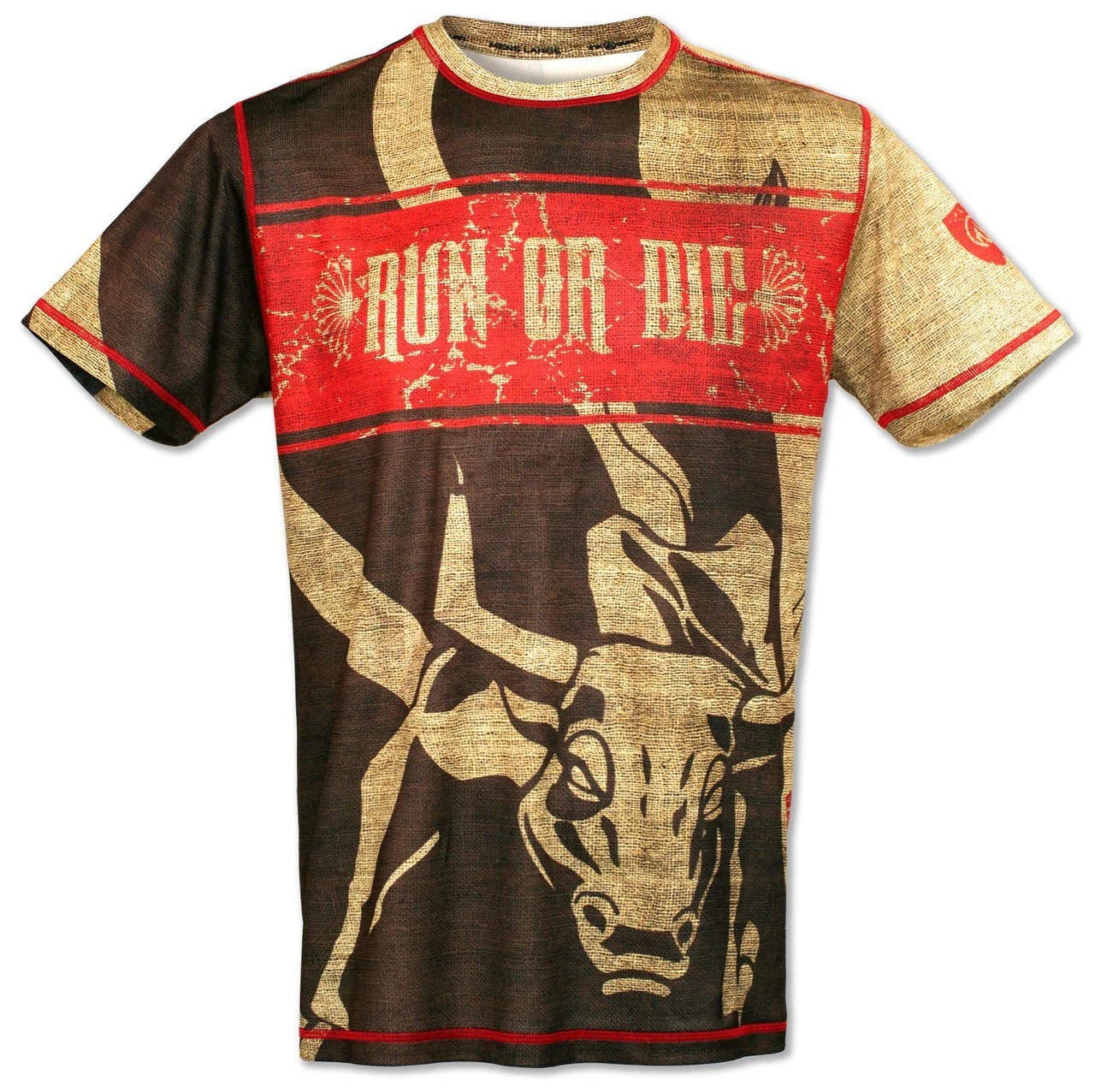 This Men’s Toro Tech Shirt features INKnBURN’s “Run or Die™” phrase in a whole new context. There’s nothing like a charging bull to get you motivated to run! Keeping that whole adrenaline rush in mind, INKnBURN created this design in the retro style of burlap coffee bean bags. Don’t worry though, while it looks coarse and scratchy, it is really just INKnBURN’s highly-detailed art. Just like all INKnBURN tech shirts, it is made with their smooth Dry I.C.E. Technical Fabric that wicks away moisture to keep you cool and dry through any athletic endeavor. And unlike burlap, it won’t fade over time or show sweat!