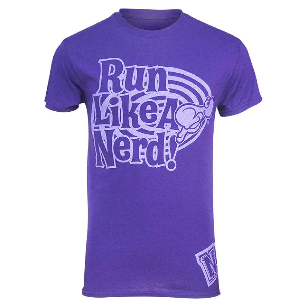 Geek is chic, and flying free is a great feeling. This lush purple dry-fit shirt will keep you comfy and dry on even the most demanding of runs. So let everyone know who really runs the world, and Run Like A Nerd!