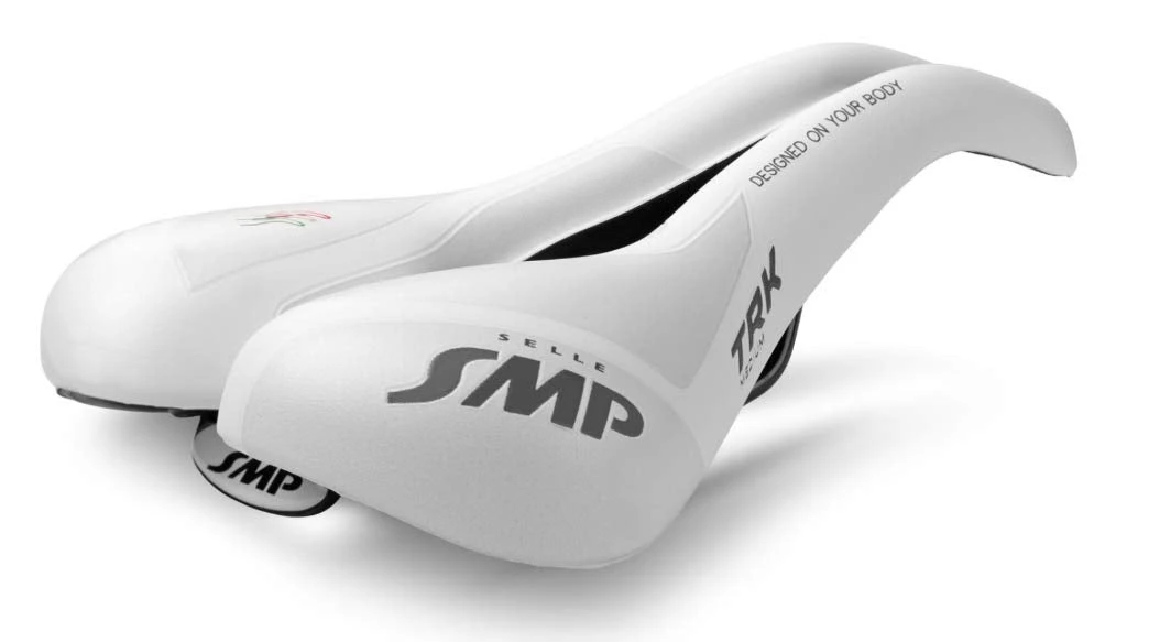 The TRK Saddle brings Selle SMP’s unique ergonomic design to a more affordable price. The emphasis here is on comfort above all else. The TRK is perfect for recreational riders and commuters, featuring the same revolutionary dropped nose and large central cutout of the SMP road racing saddles with the addition of heavily cushioned padding and a wider shape for additional comfort and support. Carbon fiber infused Nylon-12 shell. AISI 304 tubular steel rails. Nap leather cover. Foamed elastomer padding. 280mm x 160mm. 395g. Black. Made in Italy.