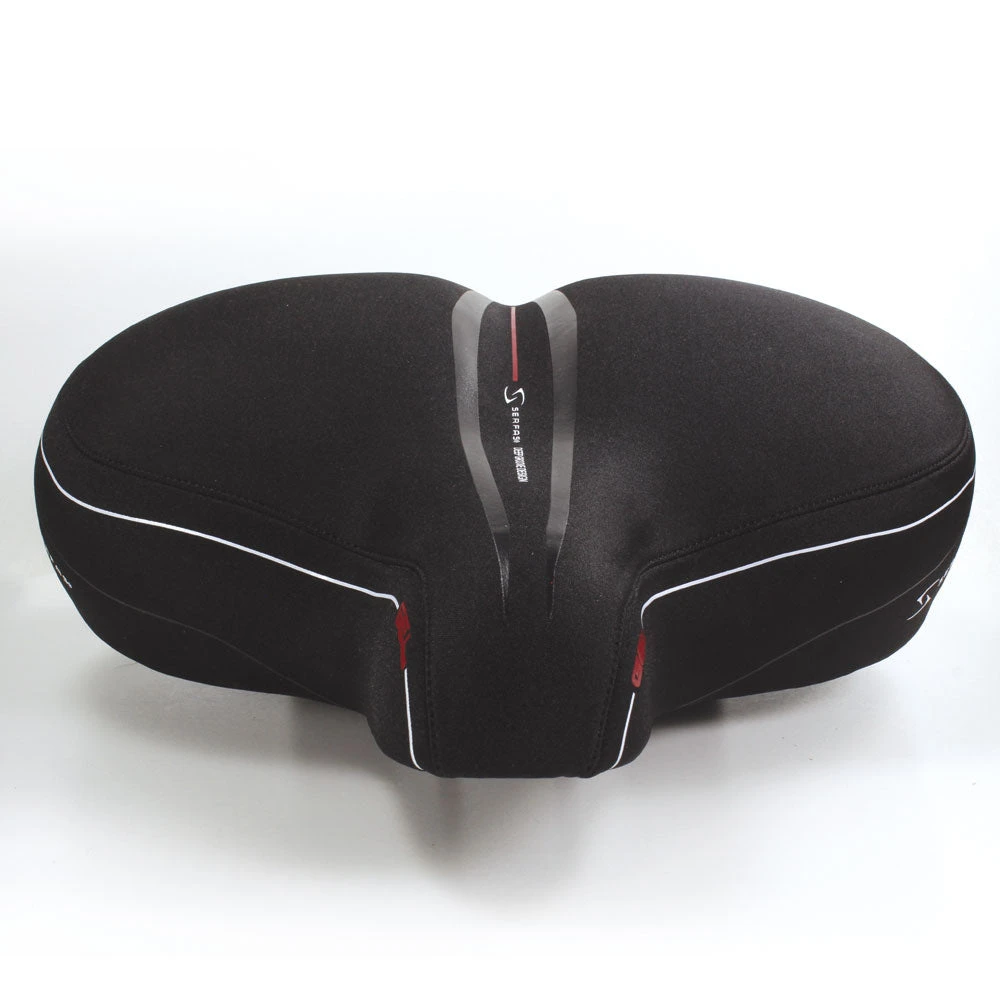 The largest saddle available with rails. This thing is HUGE in stature & COMFORT.