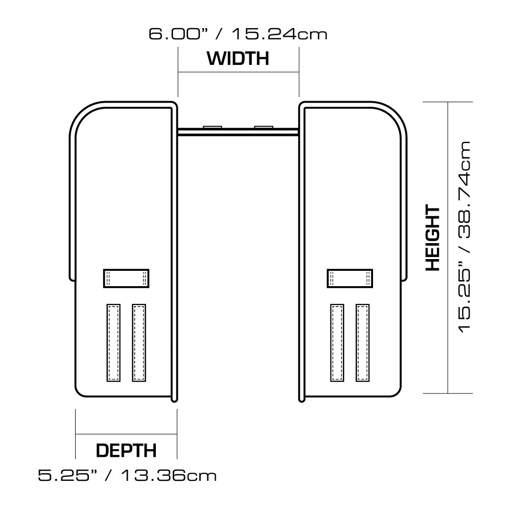 - Dimensions: 15″ (Top Width) x 15.25″ (Height) x 12.5″ (Bottom Width) — 6″ Wide Connecting Center Attachment Panel