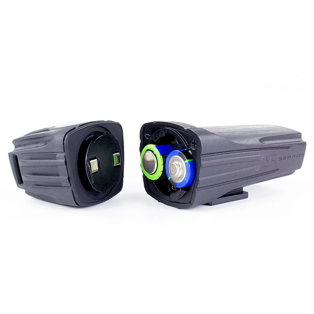 An economical and stylish starter headlight/taillight combo kit that uses common AA & AAA (2x) batteries. (Batteries included)