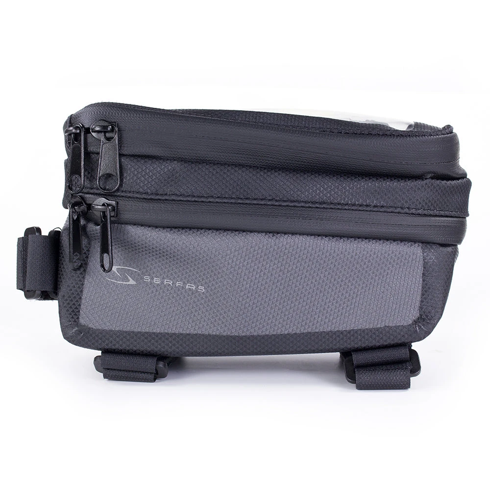The Serfas® LT-STM5 Waterproof Cell Phone Top Tube Bag safely keeps your mobile device mounted and within view as well as nice and dry if the sky decides to open up. The top facing see-through waterproof sleeve is touch-friendly so you can still easily “swipe right,” check local weather, or track your rides without having to remove the device.*