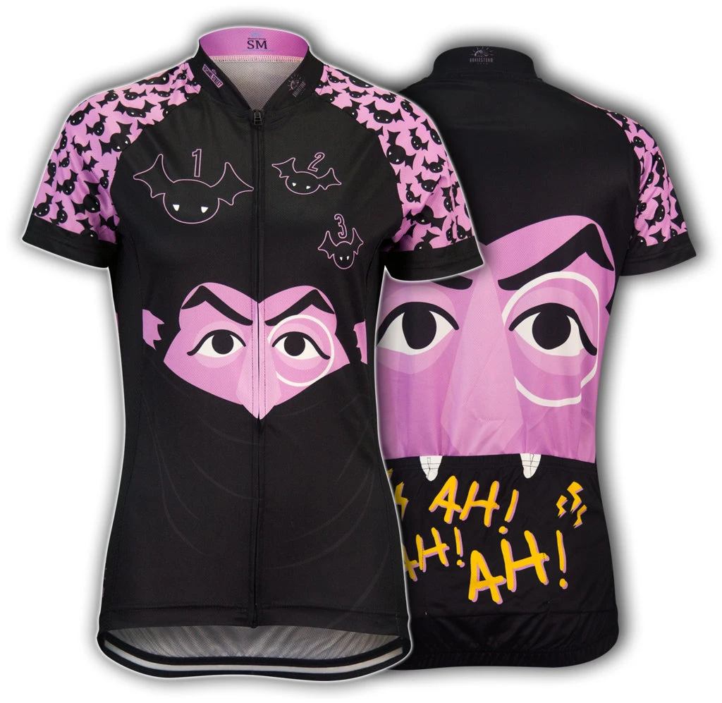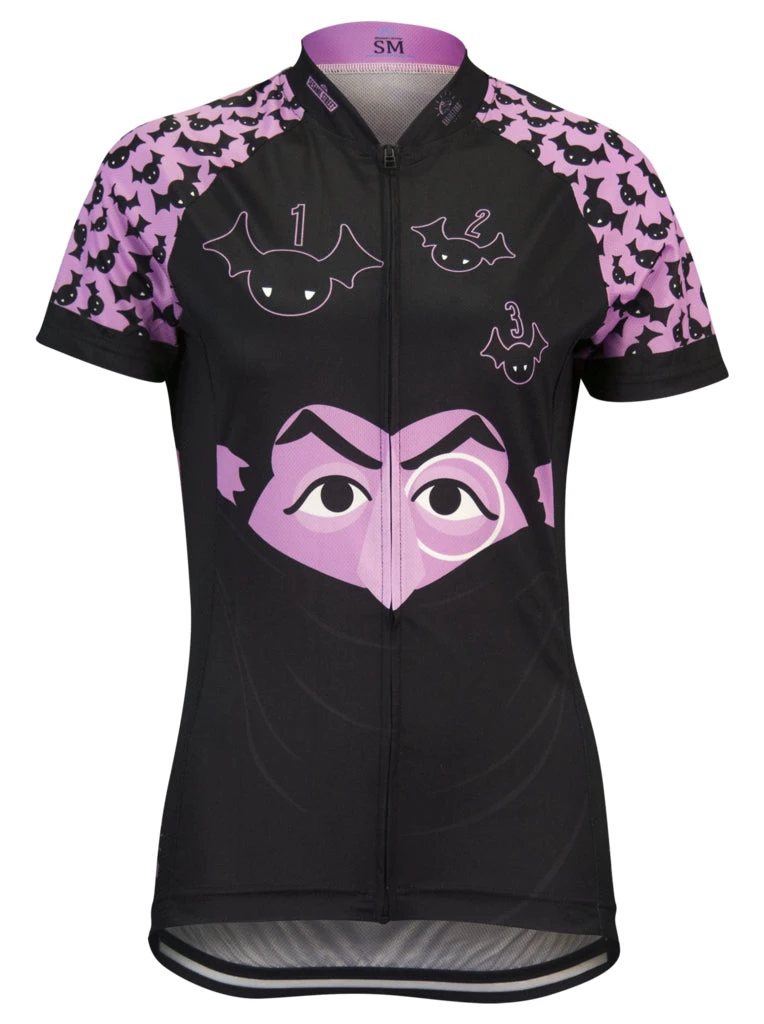 Count the miles as they fall away beneath your tires, and don’t let the thunder and lightning scare you – you can do it! Count von Count is always stylin’, and you will be too in this great new Sesame Street cycling jersey featuring the world’s friendliest vampire. Oh, and don’t forget to laugh!