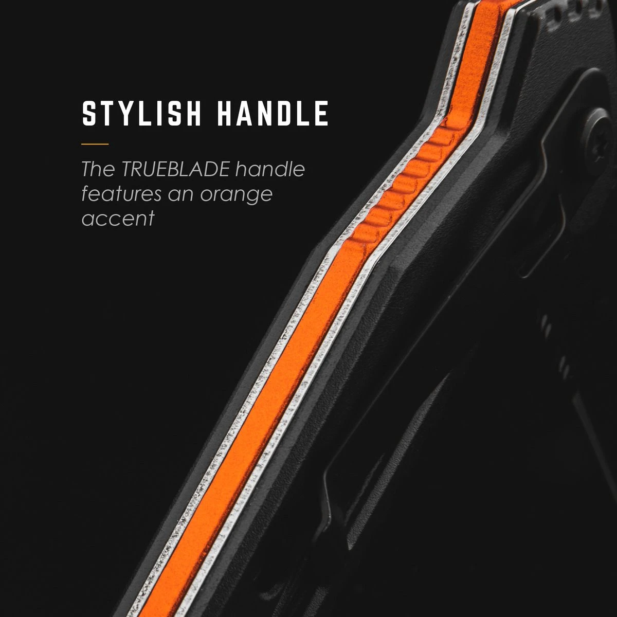 The TRUEBLADE is a lightweight, everyday carry pocket knife with a 2.75” partially serrated, black oxidized, 420 grade stainless steel blade. The handle is crafted from a stainless steel frame with anodized aluminum scales to keep its design lightweight and minimal. This knife features a pocket clip making it the perfect companion for any task.