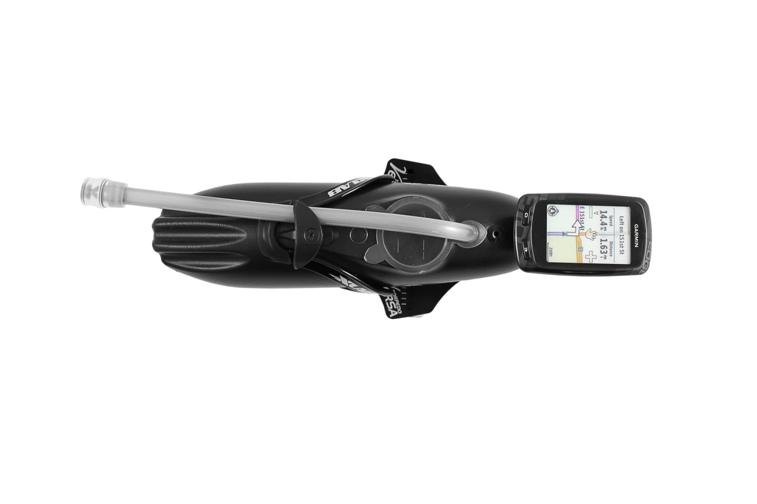 Durable, aluminum aerodynamic aerobar hydration system with telescoping computer mount. Raise the computer mount up to tuck in a Refill Bottle for race day, or lower it down for a standard bottle to maintain the optimal view for training days.